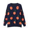 Autumn and Winter New Casual Loose Orange Pattern Round Neck Long Sleeved Knitted Pullover Sweater for Women 3570 KTB