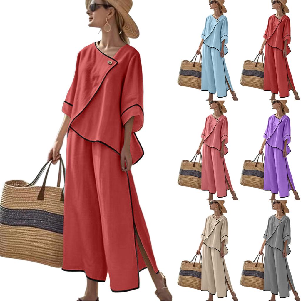 Two Piece Sets For Women Casual 3/4 Sleeve Shirts And Short Pants