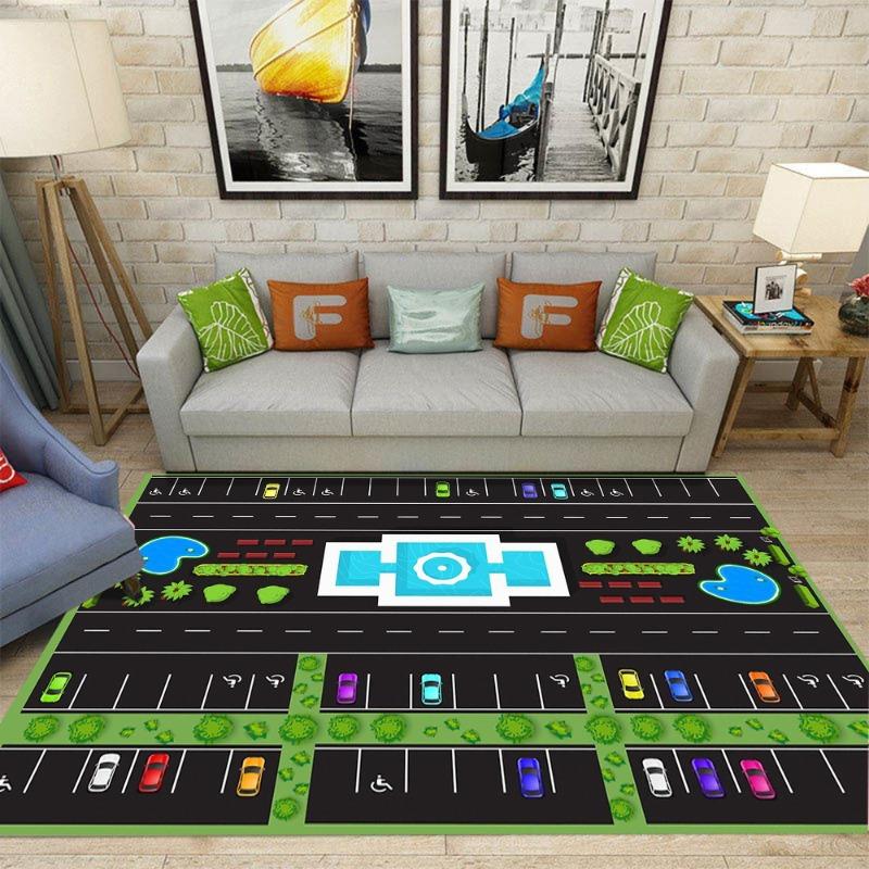 Urban Transportation Carpet Car Track Children's Game Rug Bedroom Living Room Anti Slip Floor Mat Home Decoration