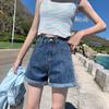 Pants Classic and Minimalist Fashion Versatile High-waisted Female Summer Loose Thin Wide-legged Burlap Denim Shorts Individuality and Trendiness