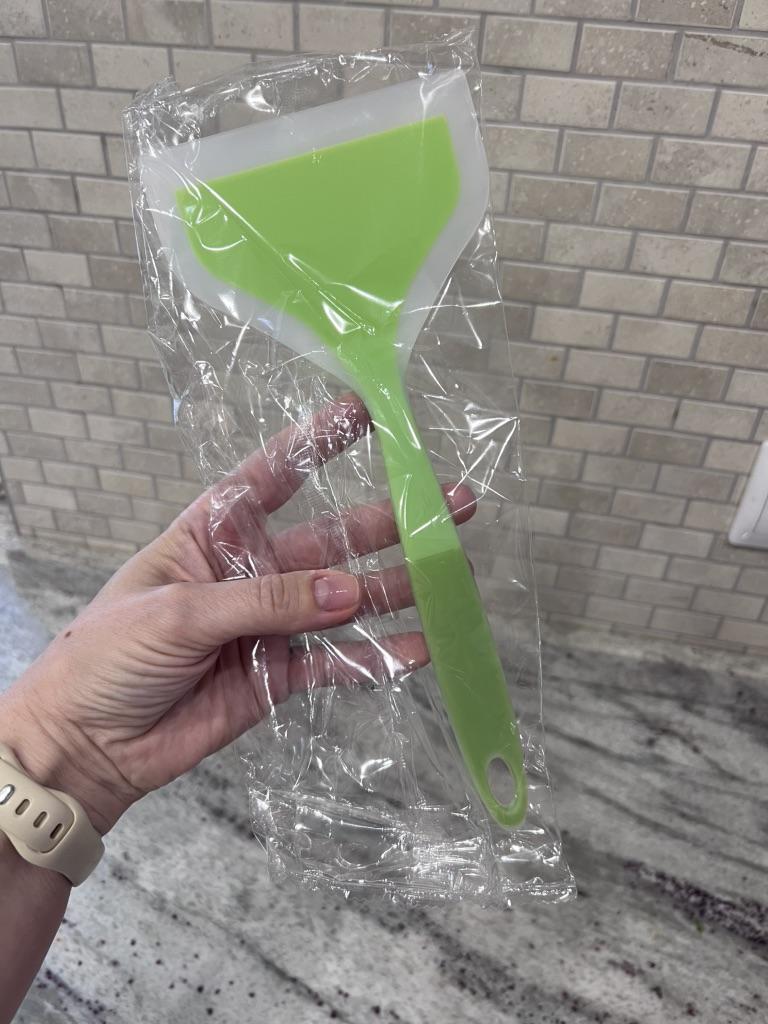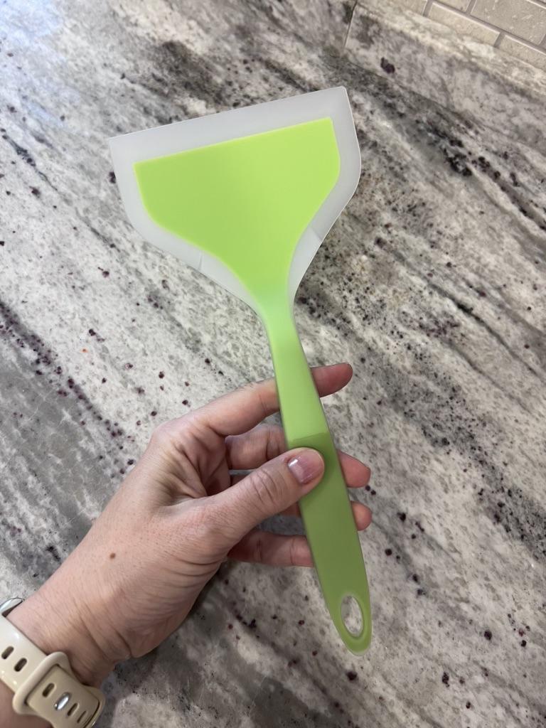 The ultimate spatula for pancakes and more! ⭐⭐⭐⭐⭐ I bought this silicone spatula in green and am thrilled with the choice. The feature that makes it superior to others is its width: being very wide, it allows you to flip large pancakes, omelets, or burgers in a single gesture, without breaking them.. Why I like it: Excellent Material: The silicone is of high quality, heat-resistant, and super flexible, ideal for not scratching non-stick pans. Ergonomic Design: Despite being large, it is light and easy to handle. Vibrant Color: The green is very beautiful and adds a touch of cheerfulness to the kitchen. It cleans up in a flash (even in the dishwasher) and has become my favorite tool for breakfast and beyond. An indispensable purchase! Thanks Joom