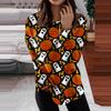 Women's Round Neck Tops Cotton Women's Casual Fashion Halloween Print Long Sleeve O-Neck Pullover Top Blouse