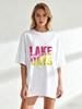Lake Days Oversized T Shirt Black Pink And Yellow Gradient Text Sun Rays Print Summer Beach Vacation Wear