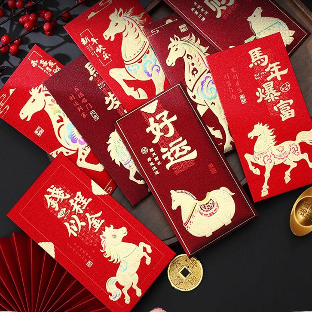 6Pcs Gold Foil Design New Year Red Packets Lucky 2026 Luck Money Bag Red Envelopes Spring Festival