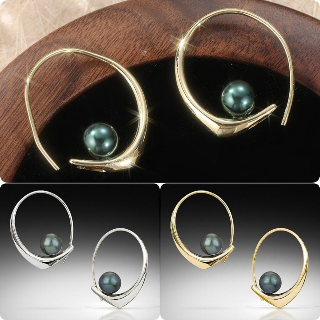 Vintage Concise Design Green Imitation Pearl Hoop Earrings for Women Banquet Daily Versatile Jewelry Accessories Crafts