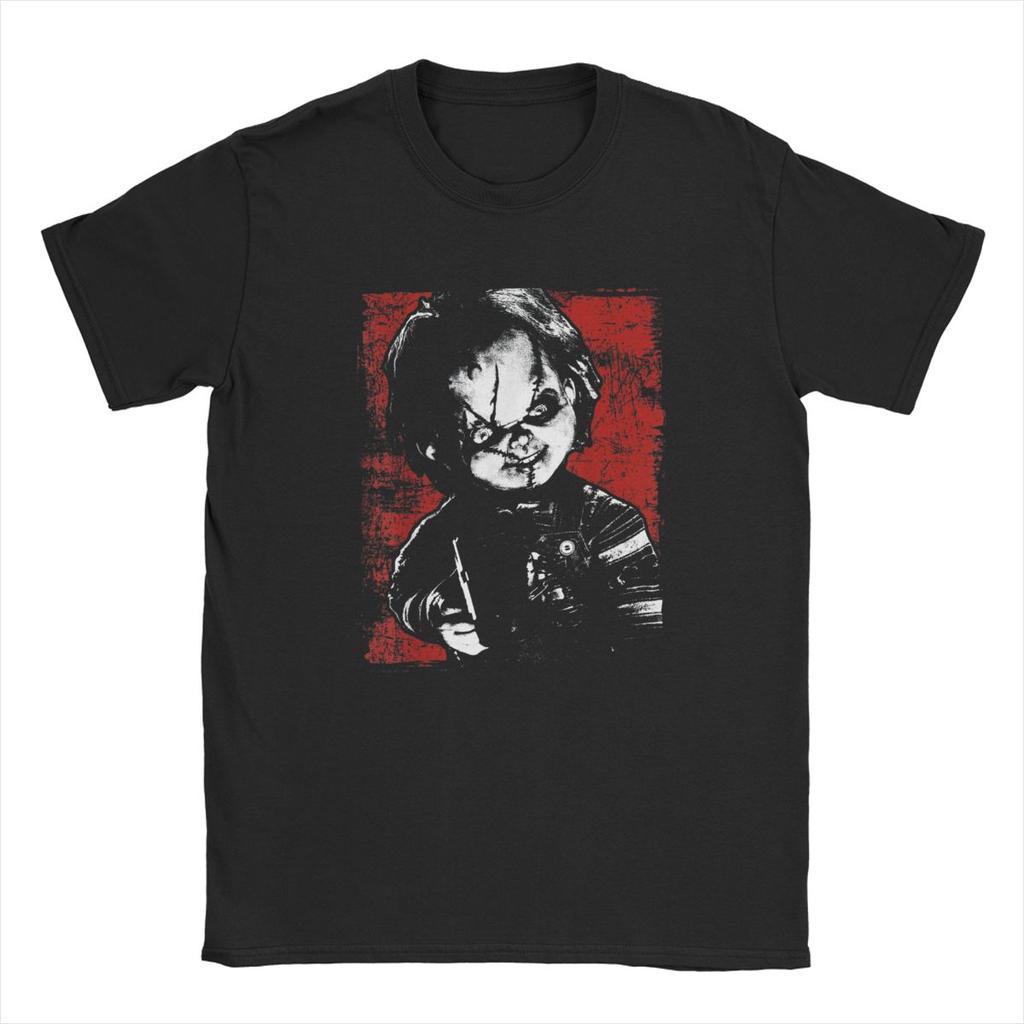 Chucky Men Child's Play Distressed Portrait T Shirts Horror Film Game Pure Cotton Short Sleeve Round Collar Tees Gift T-Shirts