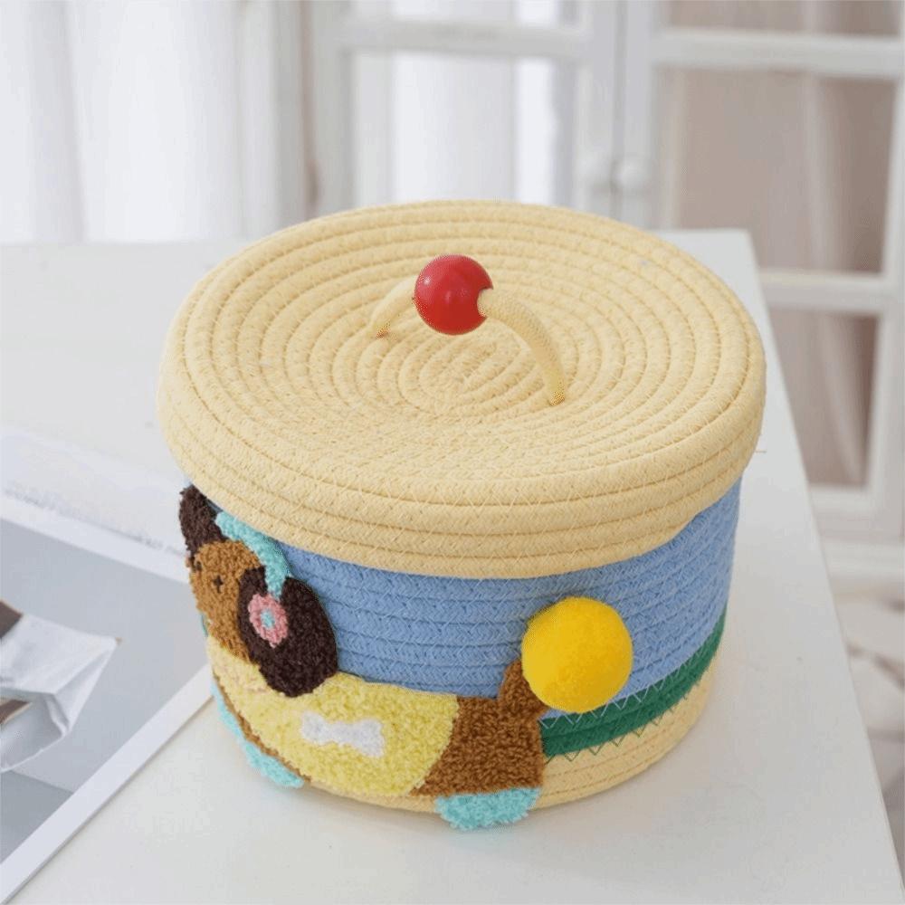 Cartoon Cotton Rope Storage Basket Dachshund Pattern with Cover Hand Gift Box Decorative Round Hand Woven Basket