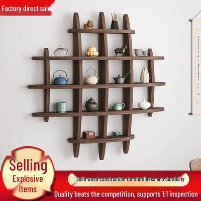 Chinese Solid Wood Wall-Mounted Teacup Rack - Antique Curio Shelf and Tea Set Display Stand