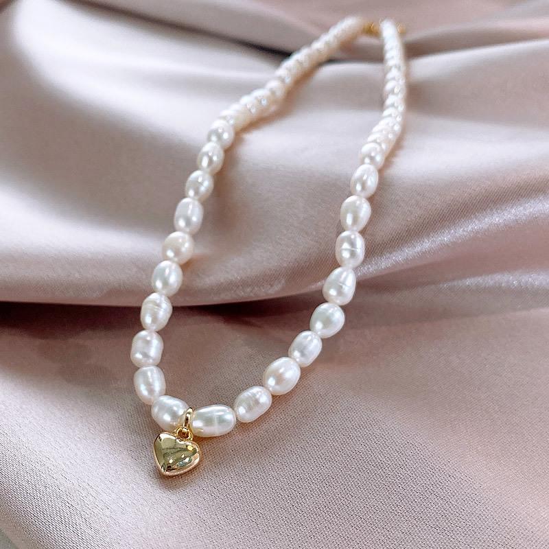 Romantic Love Heart Natural Freshwater Pearl 14K Gold Filled Ladies Pendant Necklace Wedding Gifts No Fade
