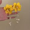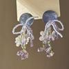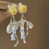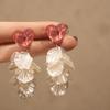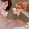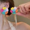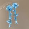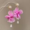 Silver Needle Chiffon Flower Tassel Earrings, Sweet Mori Style, Dopamine Trend, Versatile Women’s Earrings