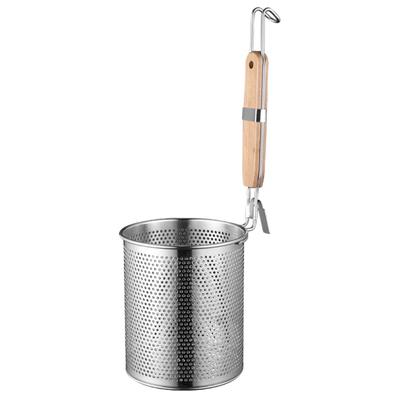 Commercial Pasta Pot 20cm Wooden Handle High Quality Stainless Steel Double Frame Structure Spaghetti Drainer Colander 18-8