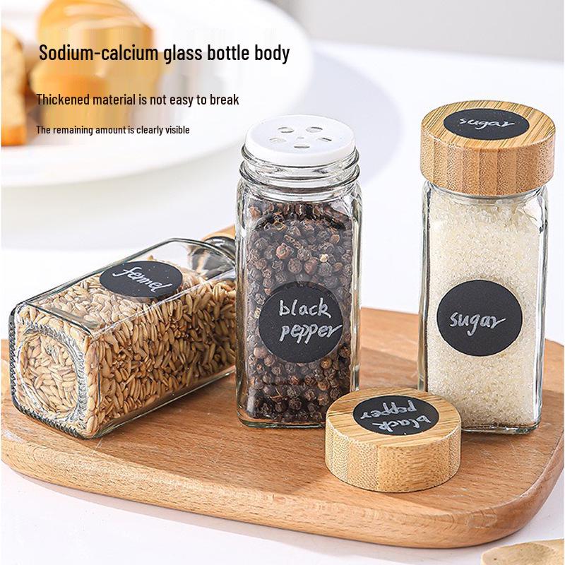 Square Glass Spice Jars with Solid Wood Lids - Kitchen Storage Set