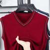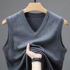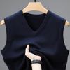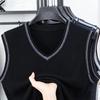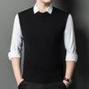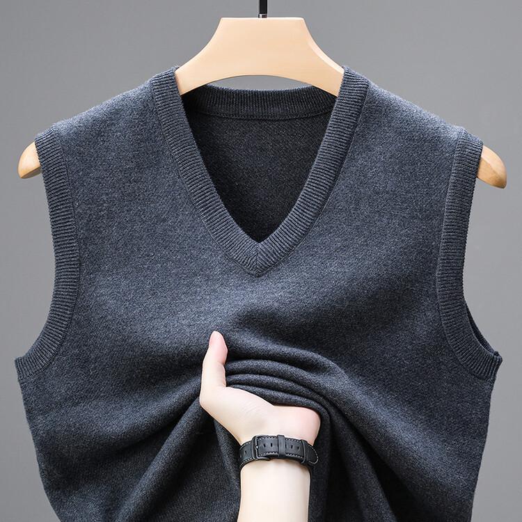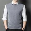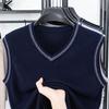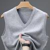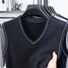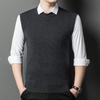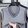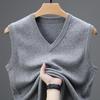 Men's V-Neck Wool Knit Vest - Autumn/Winter Solid Color, Middle-Aged & Elderly Style