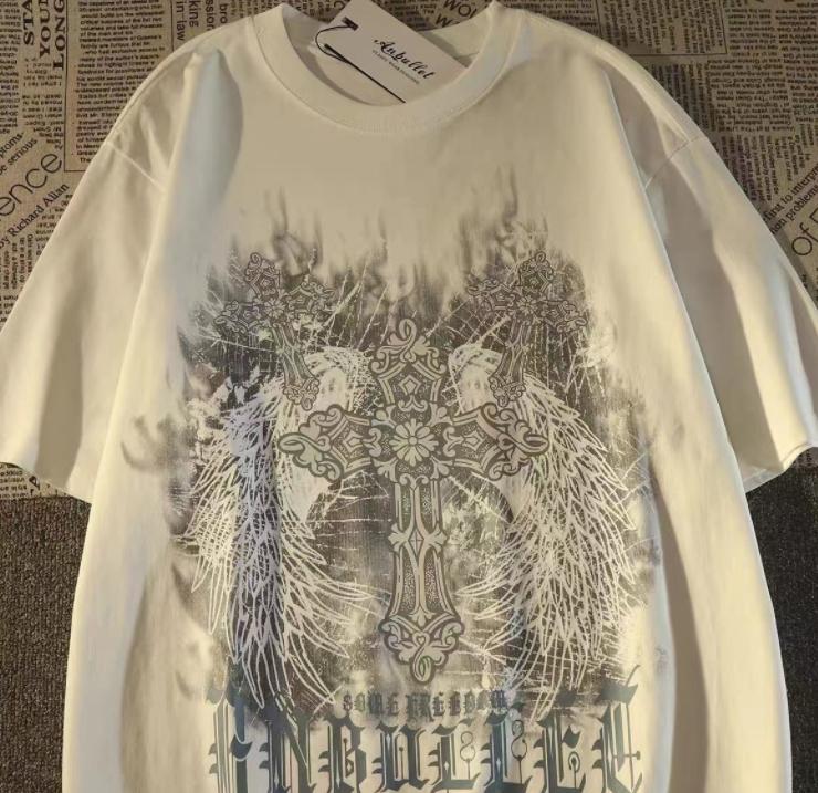 2025 Retro Cross Wing Loose Trendy Summer Tshirt 100 Cotton Cool Comfortable Versatile Adult Mens Daily Use Soft Breathable