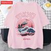 Tokyo Japan Harajuku Crane Waves Men TShirt AllMatch Casual Short Sleeve Cotton Summer Tee Male Hip Hop ONeck Streetwear