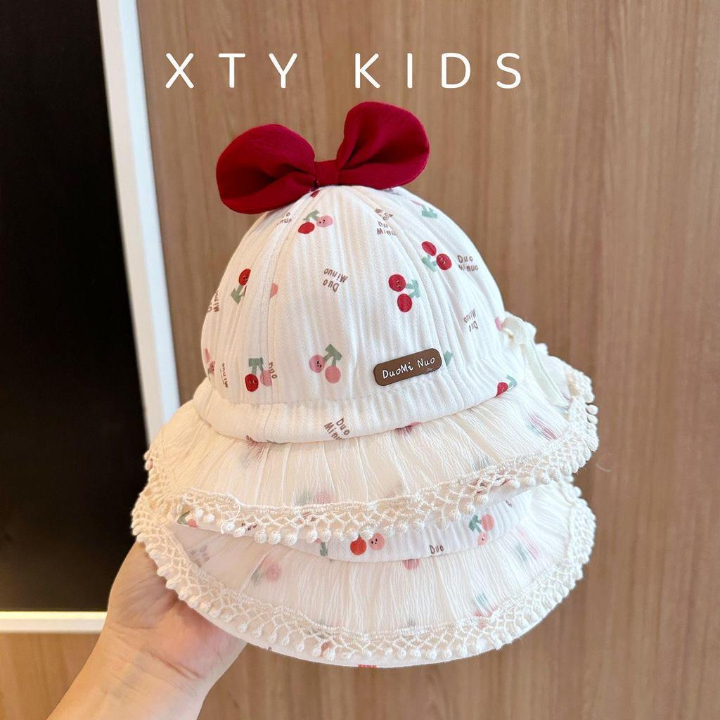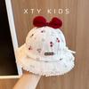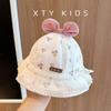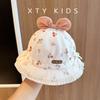 Korean-Style Floral Bow Fisherman Hat for Girls - Autumn/Winter Fashion Bucket Hat for Babies and Children
