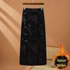 Chinese Frog Button Gold Velvet Jacquard Skirt: Mid-Length Slit Hip-Hugging Style for Spring and Autumn