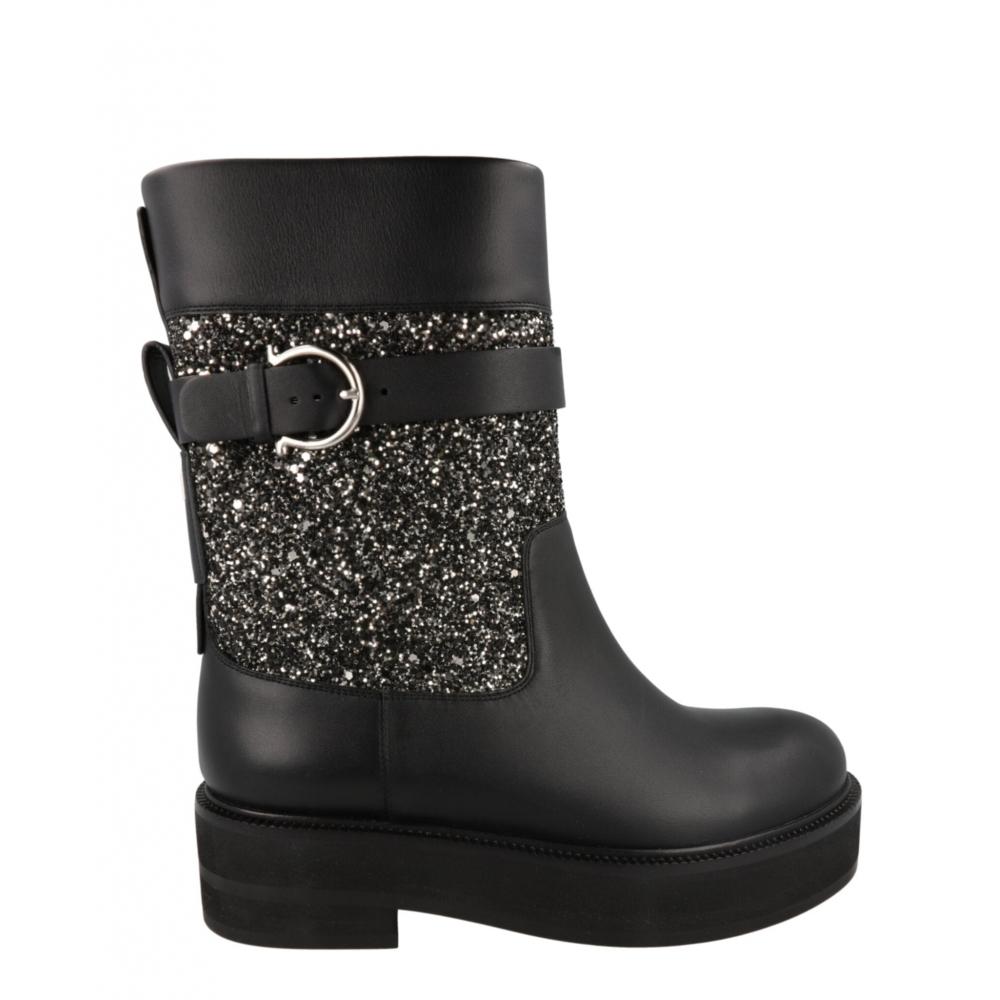 Salvatore Ferragamo Ean Glitter Ankle Boots Black