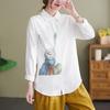 2025 Spring Women's V-Neck Cotton Linen Shirt - Long Sleeve, Loose, Plus Size, Trendy Cut Label
