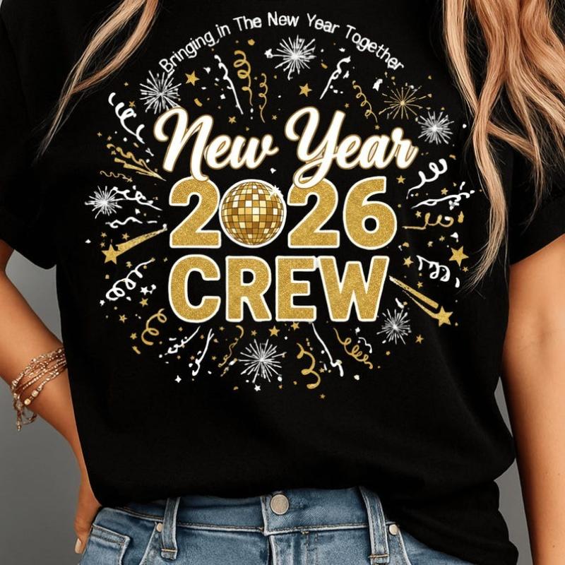 Crew Design Digital Download Glitter Gold Sublimation Happy New Year 2026 Clipart Shirt Fashion Allmatch Graphic Tshirts