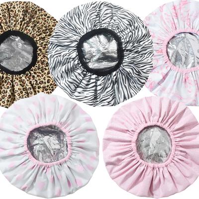 Waterproof Shower Cap Leopard Print Double Layer Elastic Shower Hair Cover Reusable Shower Cap Bathroom Supplies