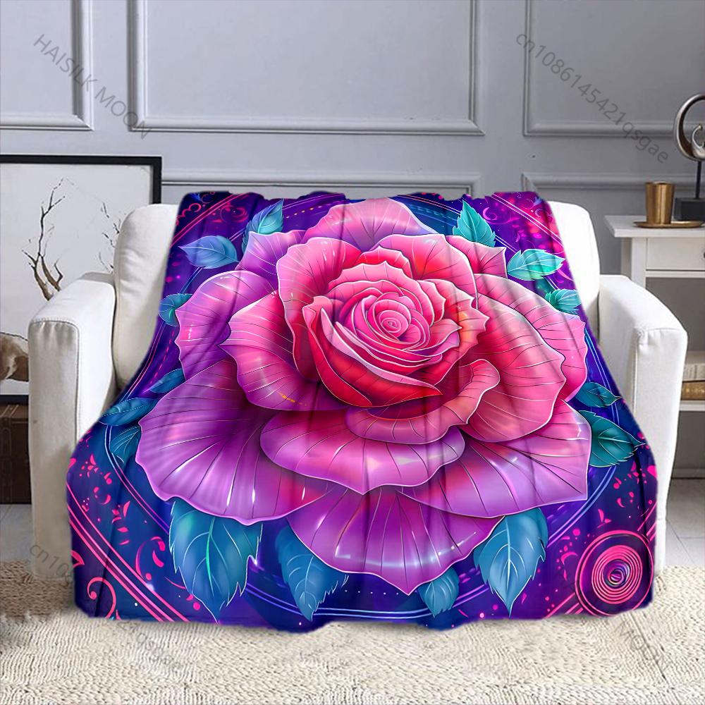 Fantasy Colored Roses Print Blanket Warm Soft Fluffy Kids and Adults Sofa Bed Throw Blanket for Home Travel Camping Gifts