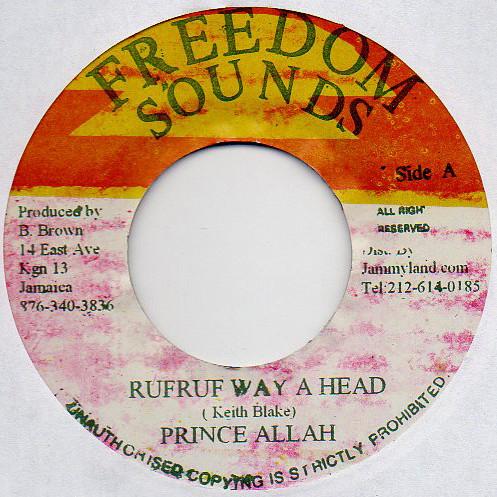 7inch Record PRINCE ALLA Rufruf Way A Head NONE Freedom Sounds Jamaica Reggae Ska Dub Used