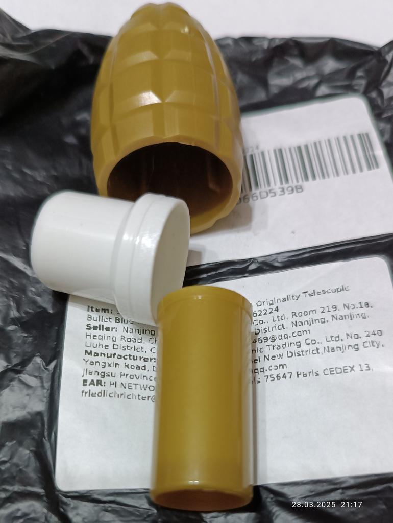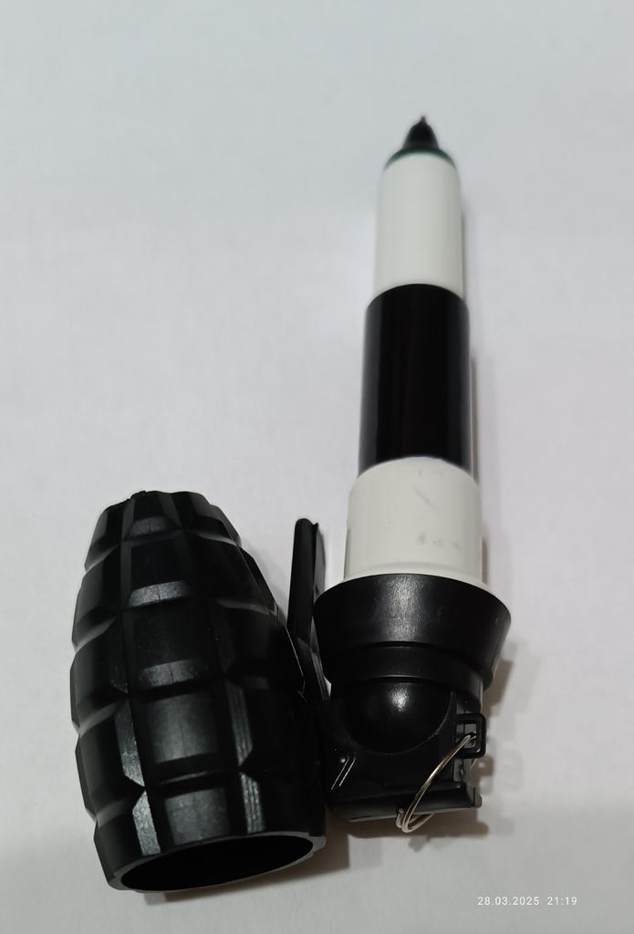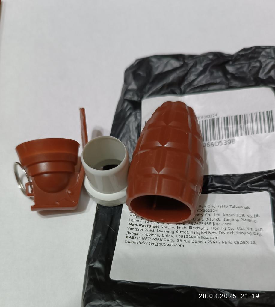 De las tres "granadas", sólo la negra es normal. Y los otros dos son de color marrón y amarillo, sin partes componentes, incompletos. ¿O fue esa la intención?