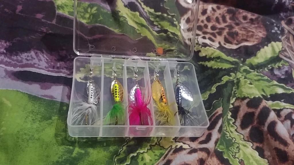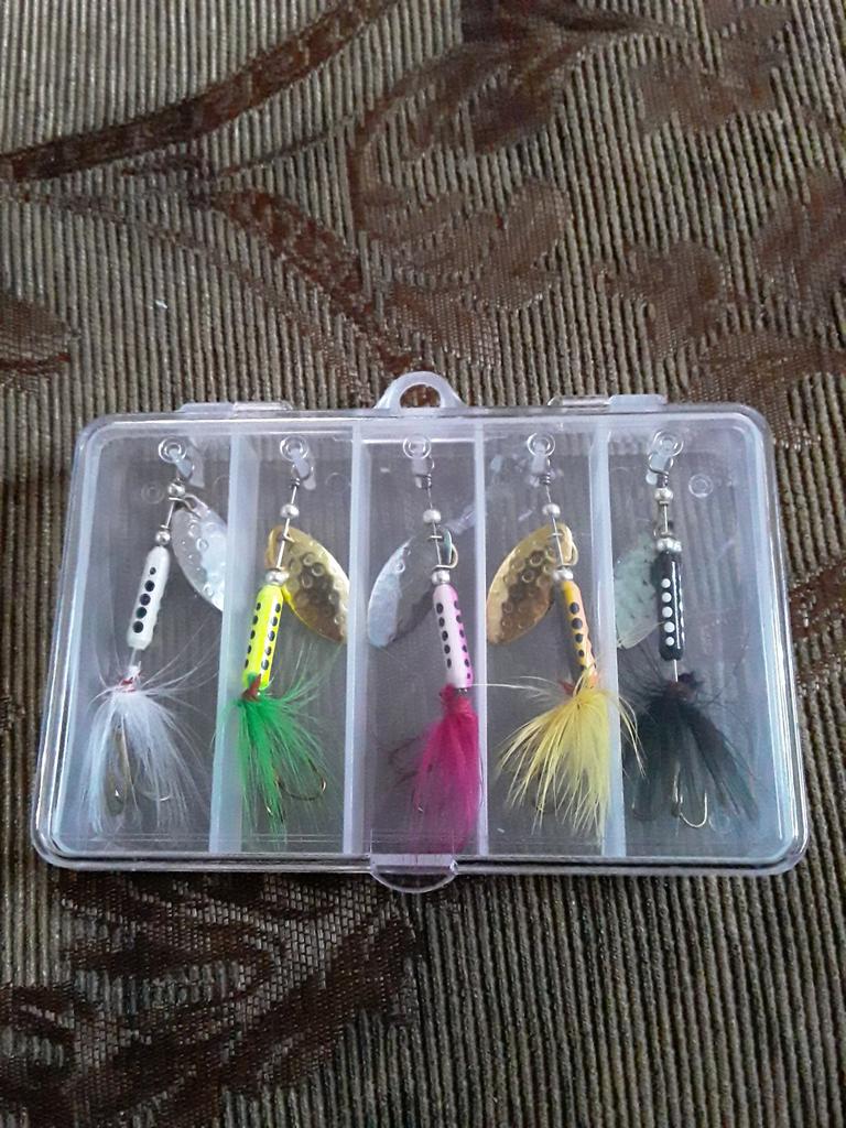Señuelo de pesca giratorio con lentejuelas, cebo de pesca para lubina, trucha, salmón, juego de cebos de cuchara de Metal duro, 5 uds.