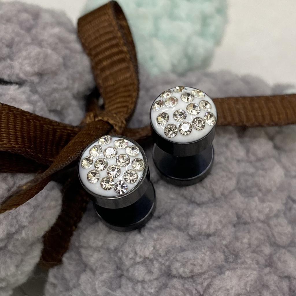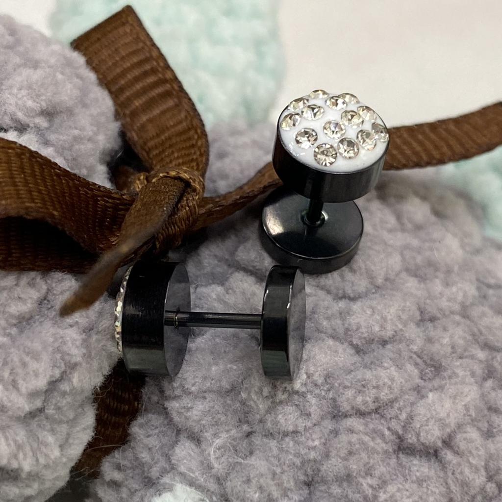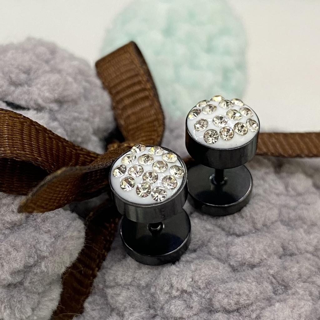 SP 2 uds hombres Barbell Punk Acero inoxidable cristal piedra oreja Stud pendientes joyería baratija