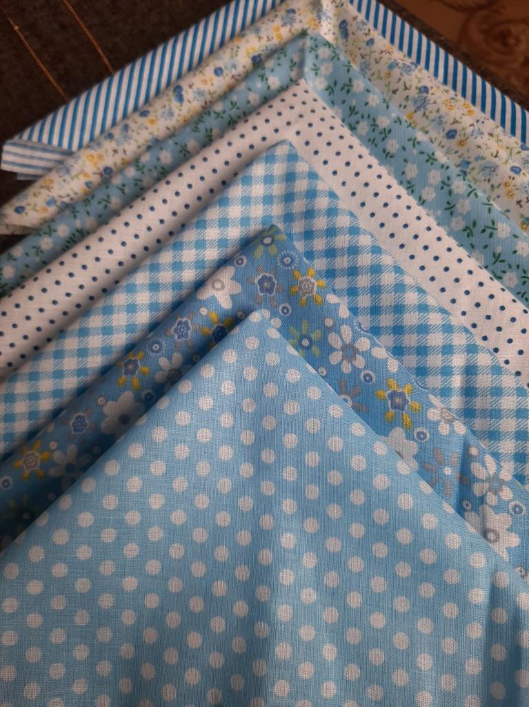 7 piezas de tela, muy buena calidad y relación calidad-precio. Ideal para un patchwork. ¡Definitivamente voy a comprar más!