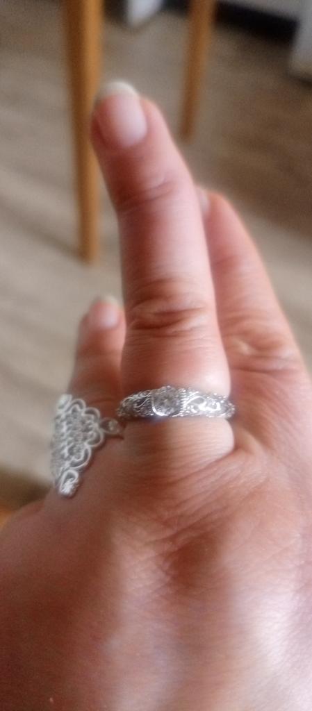 Anillo calado con circonita blanca. Un hermoso anillo. Recomiendo comprar.