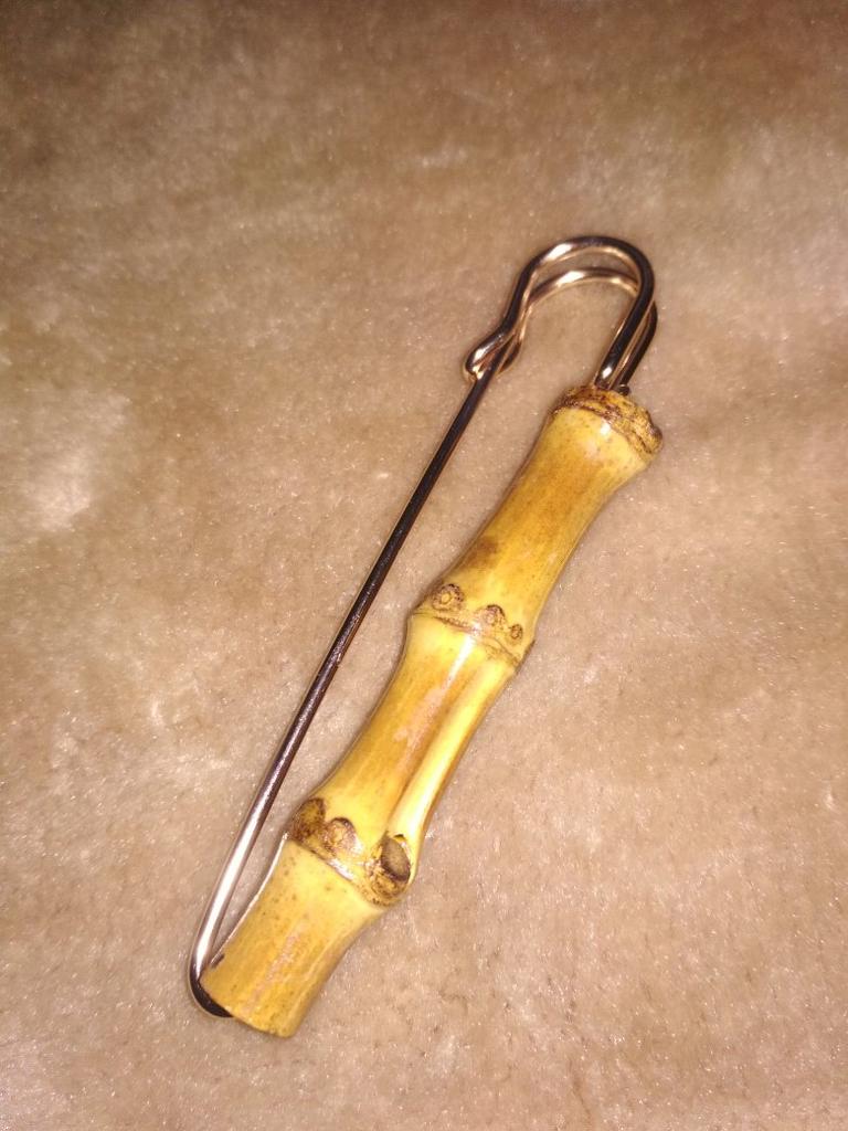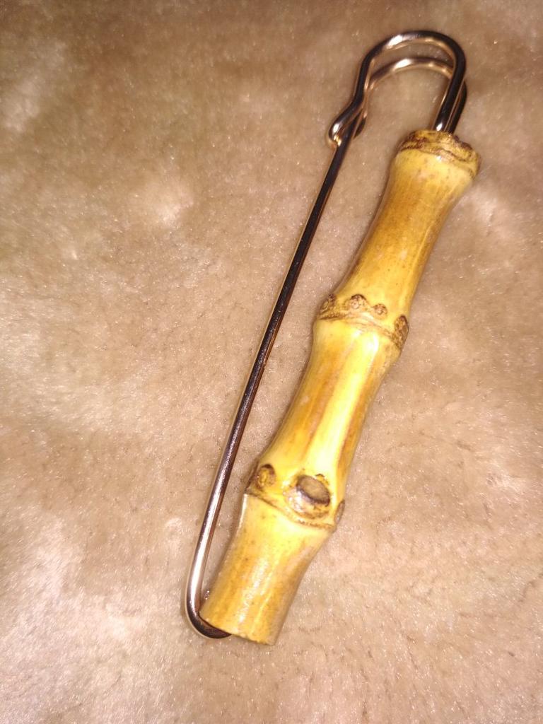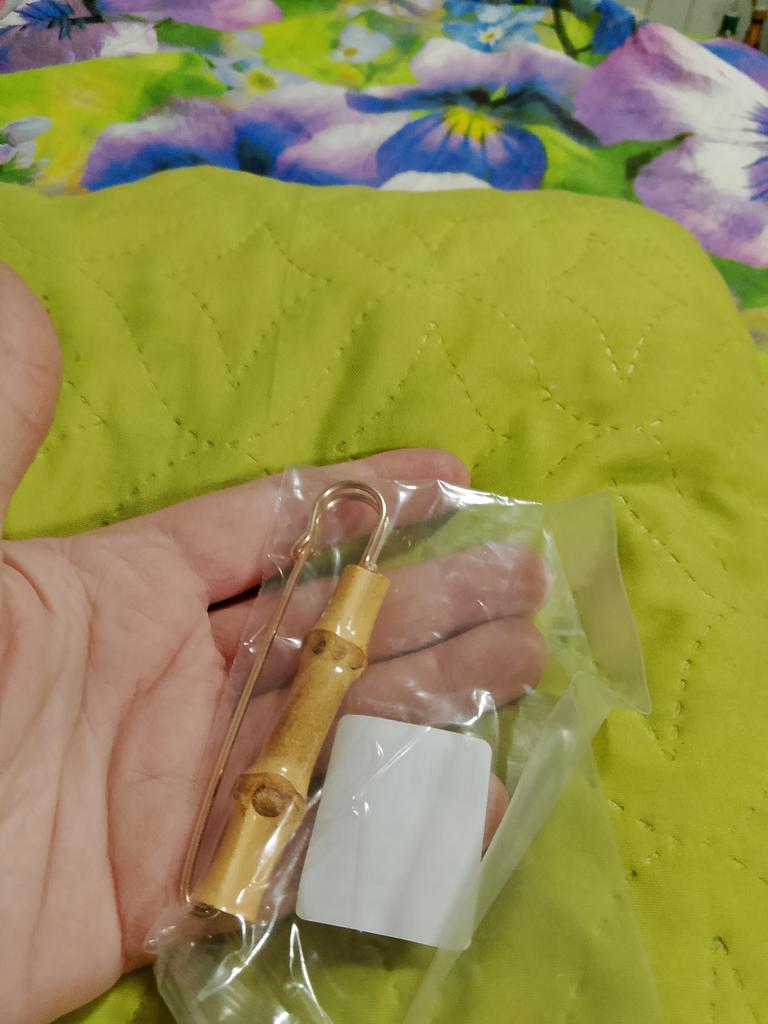 Es una zapatilla grande))) presta atención, para fijar la bufanda, en el abrigo, bambú real y huele a madera, barnizado. Accesorio de calidad