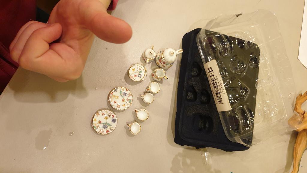 El envío no venía muy protegido pero ha llegado intacto. La pintura no es perfecta pero las piezas son muy pequeñas. A mi hija le va a encantar para poder poner a sus barbies a tomar el té.