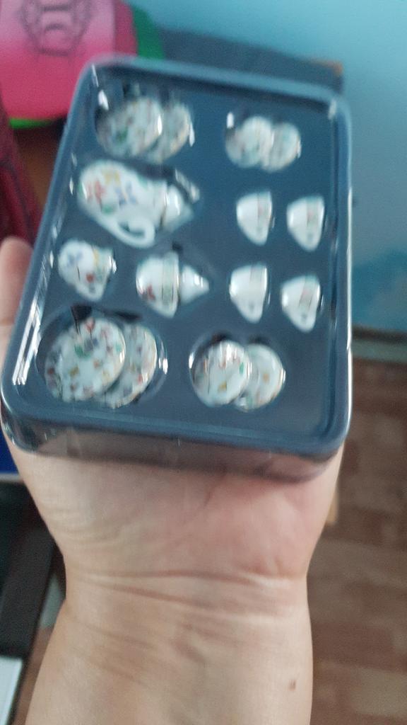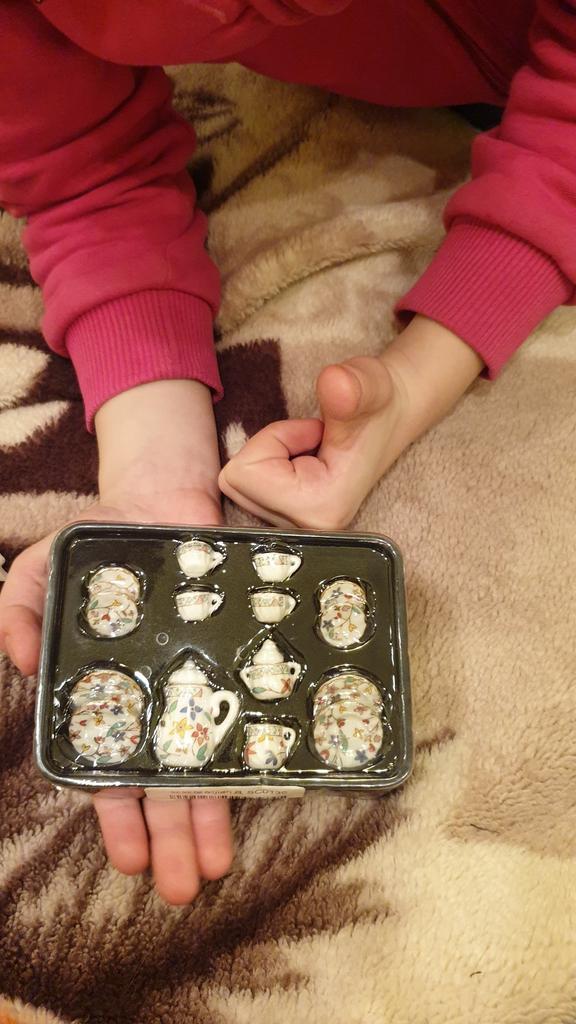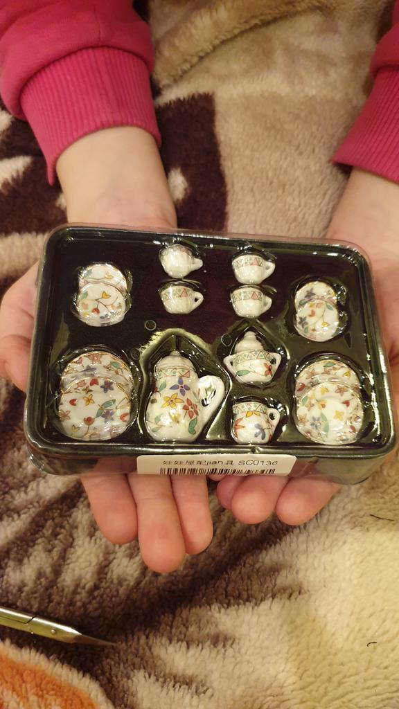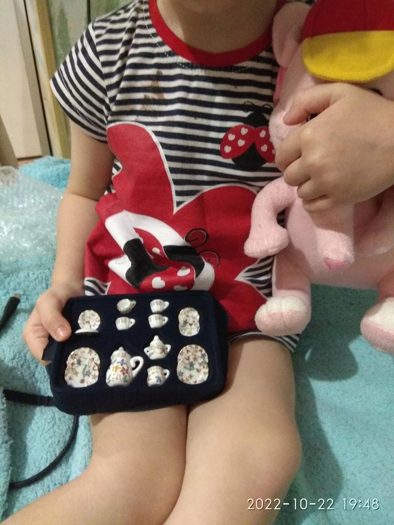 Todo el juego cabía en la mano. Cada pieza de vajilla es diminuta, incluso tengo miedo de dársela al niño. ¿Y si se la traga? No pensaba que la vajilla fuera tan pequeña