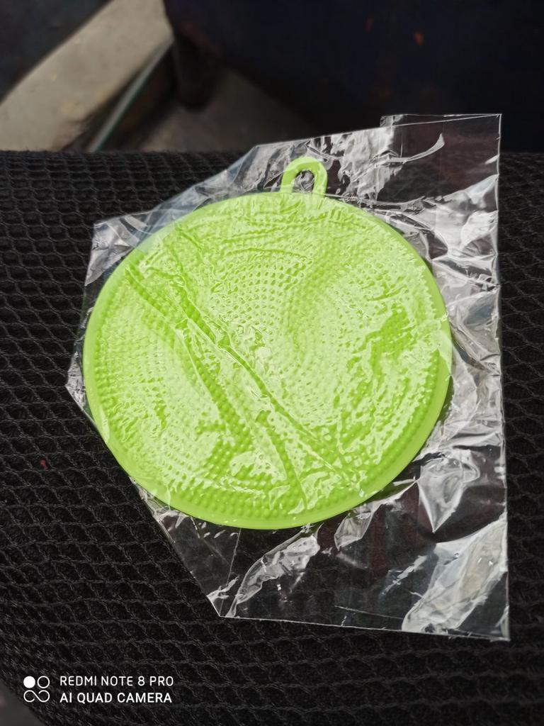 Es suave y a la vez parece eficaz, falta probarlo en vasos y sartenes, parece q no raya porque no raspa la piel