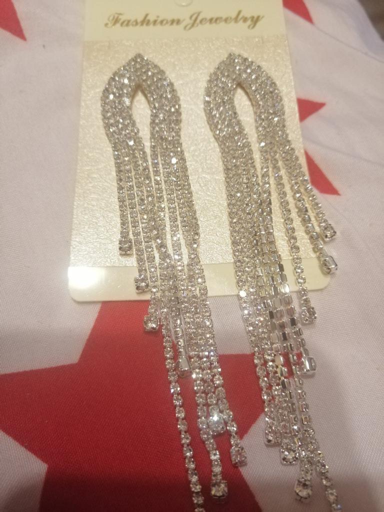 Pendientes largos de diamantes de imitación Superaron mis expectativas. Muy brillante y elegante y estoy muy satisfecho con esta compra.. Tengo muchos aretes grandes y brillantes, pero estos son los más livianos. Puede usarlos durante mucho tiempo sin sentir la presión de los aretes y cada pieza es suave y cómoda. Está hecho de cristal y diamantes de imitación, engarzados en un hermoso metal plateado, los aretes brillan con gracia y belleza.. Y la superficie de metal está muy pulida.. Estos son geniales para diferentes ocasiones, pero se pueden usar especialmente en una fiesta nocturna, un baile de graduación, una cita nocturna o en cualquier ocasión especial cuando se iluminan y brillan.! Me lo entregaron en 17 días sin fallas 👍👍