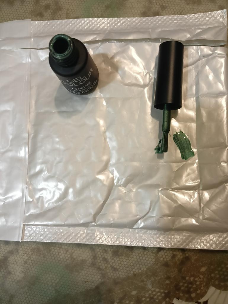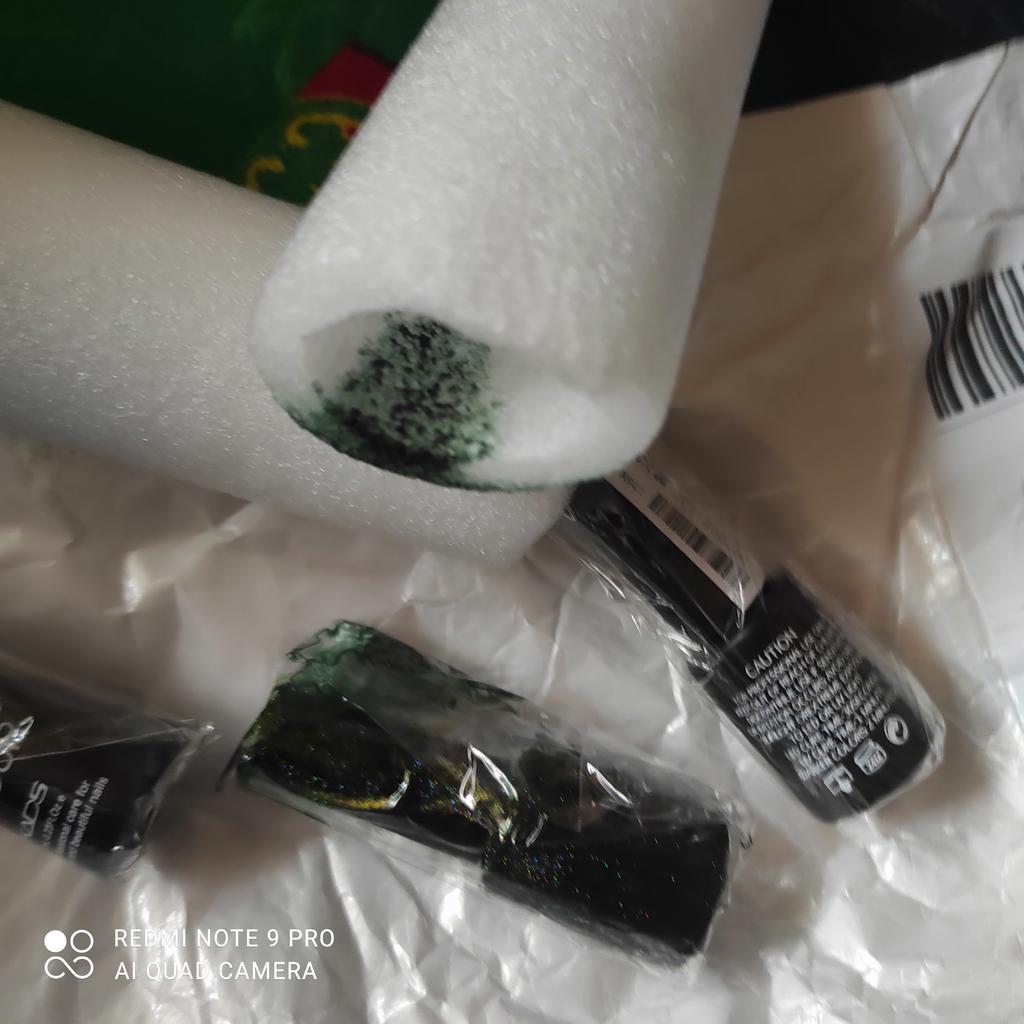 El pedido se empaquetó perfectamente. Pero uno de los barnices no estaba atornillado en la tapa, por eso se salió todo el barniz verde 😭