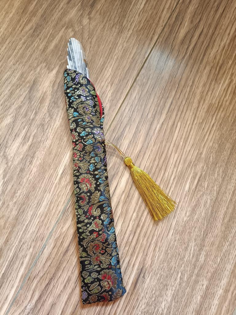 ¡La portada es genial! Muy bien hecho. Ahora mi abanico estará muy bien guardado en una bolsa, lo cual es muy conveniente y muy estético. Lo único es que solo cabe uno, el ventilador más pequeño, y tengo muchos y todos son grandes. Además, preste atención al tamaño al realizar el pedido.