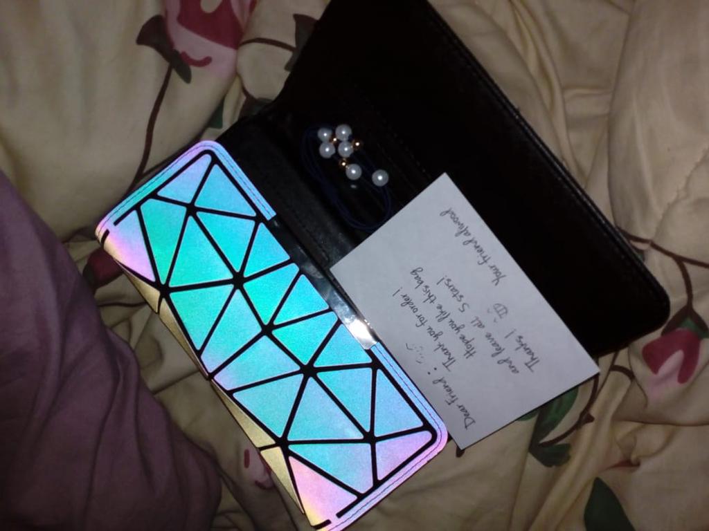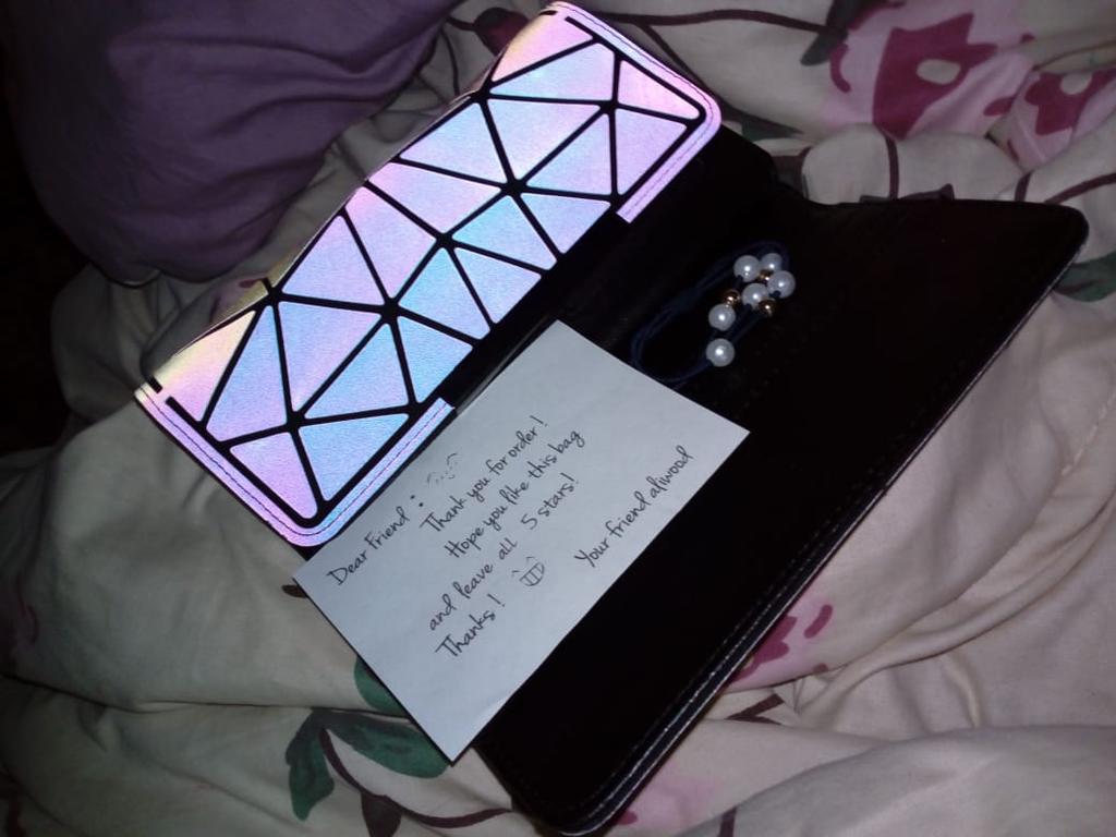 Excelente material buen acabado ninguna costura suelta resistente . El envio fue antes de la fecha y hermoso la notita me encanto todo en global de la billetera. Recomendada.