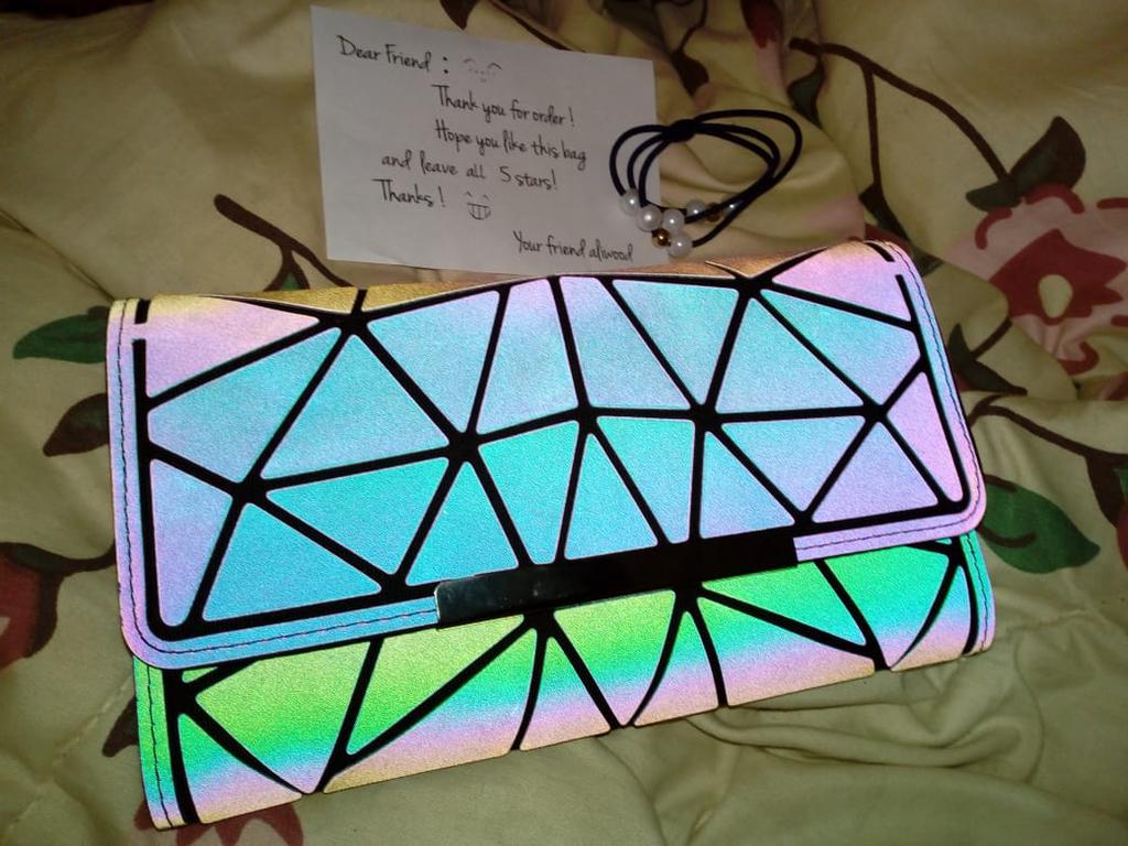 Cartera de marca para mujer, bolso largo luminoso, bolso para tarjetas para mujer, bolsos geométricos de moda para mujer