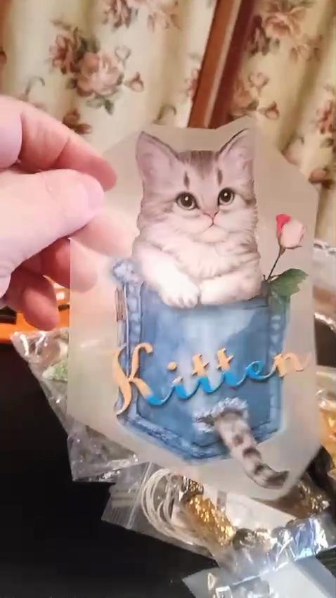 Pegatinas de gato con bolsillos, Parches de transferencia de calor, bricolaje, dulce, lavable, 3D, Parches para planchar para pantalones vaqueros