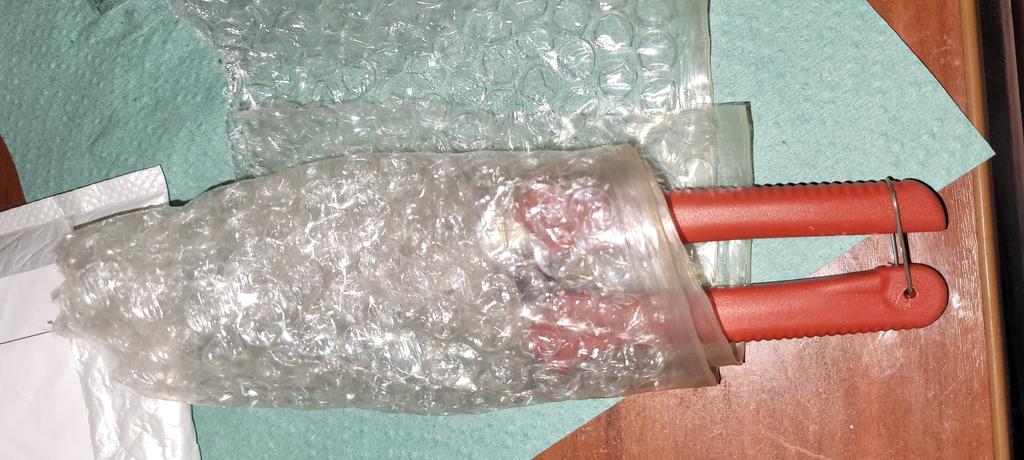 Ya pedí el segundo, pero estas manos se deslizan cuando están mojadas y no son cómodas de usar, pedí otras con insertos antideslizantes, complemento, trabajé en pepinos y tomates en el segundo día, las manijas de plástico se volaron