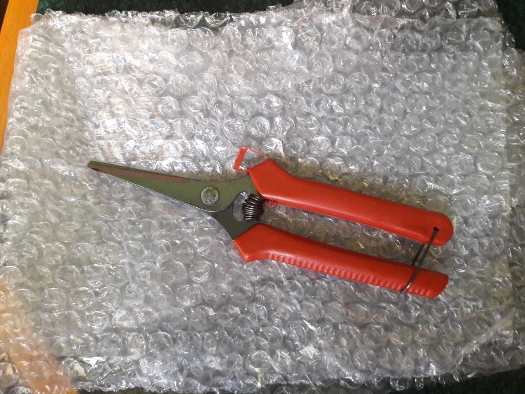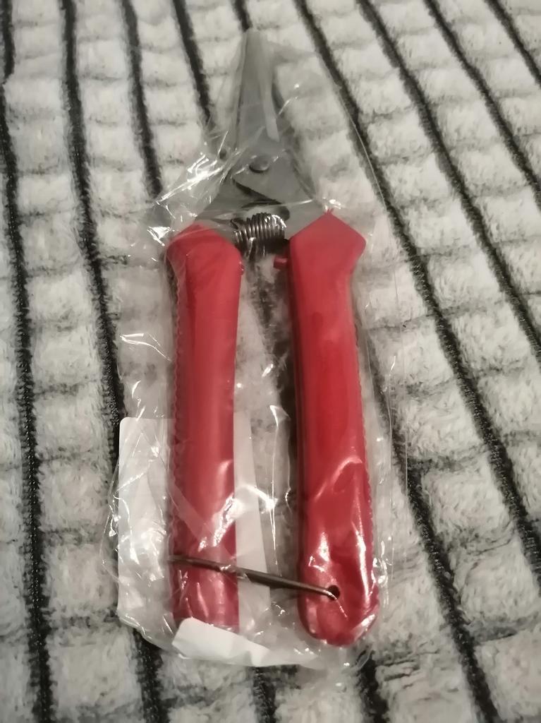 Las tijeras de podar llegaron con dos envíos. Bonito, pesado en la mano. No sé cómo corta porque todavía no lo he usado.