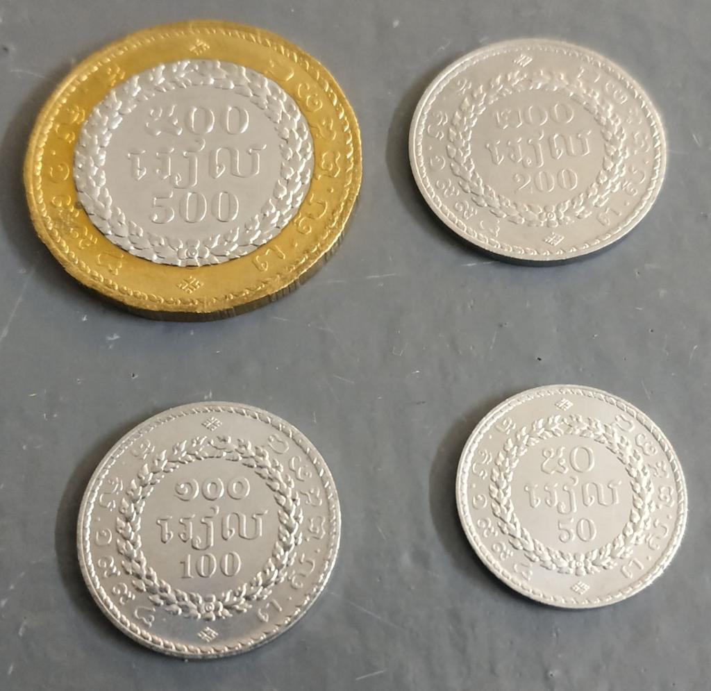 4 unids/set Asia camboyano dos colores monedas sin circular colección de monedas extranjeras regalos