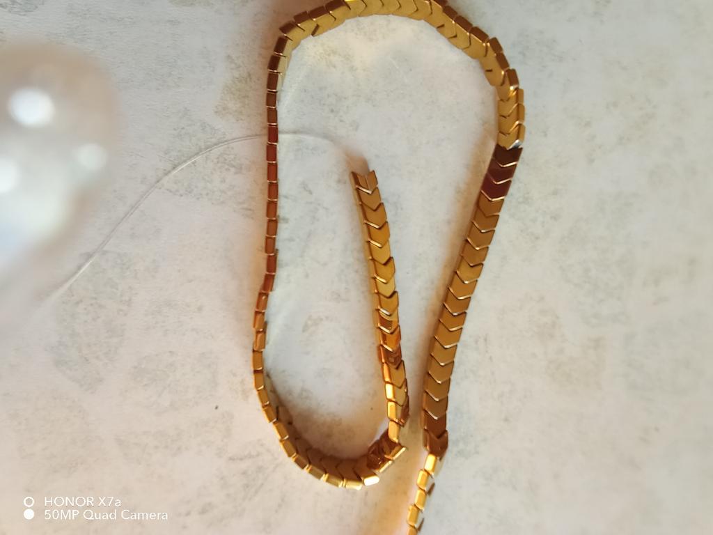 Las cuentas son muy hermosas, todo es como esperaba, hice una pulsera y puedo hacer otra. Se parece mucho a la hematita real, es un poco magnética con un imán fuerte, bueno, o una copia excelente.