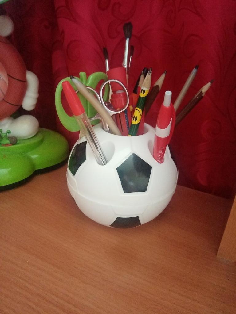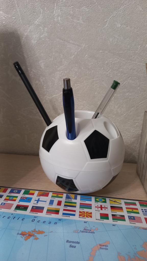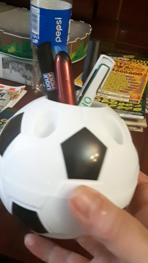 Organizador para bolígrafos 😍 Viene en forma de balón de fútbol. Hecho de plástico Bonita, se ve bien Enero 2026 el precio - era 194₽ Recomiendo ✔️
