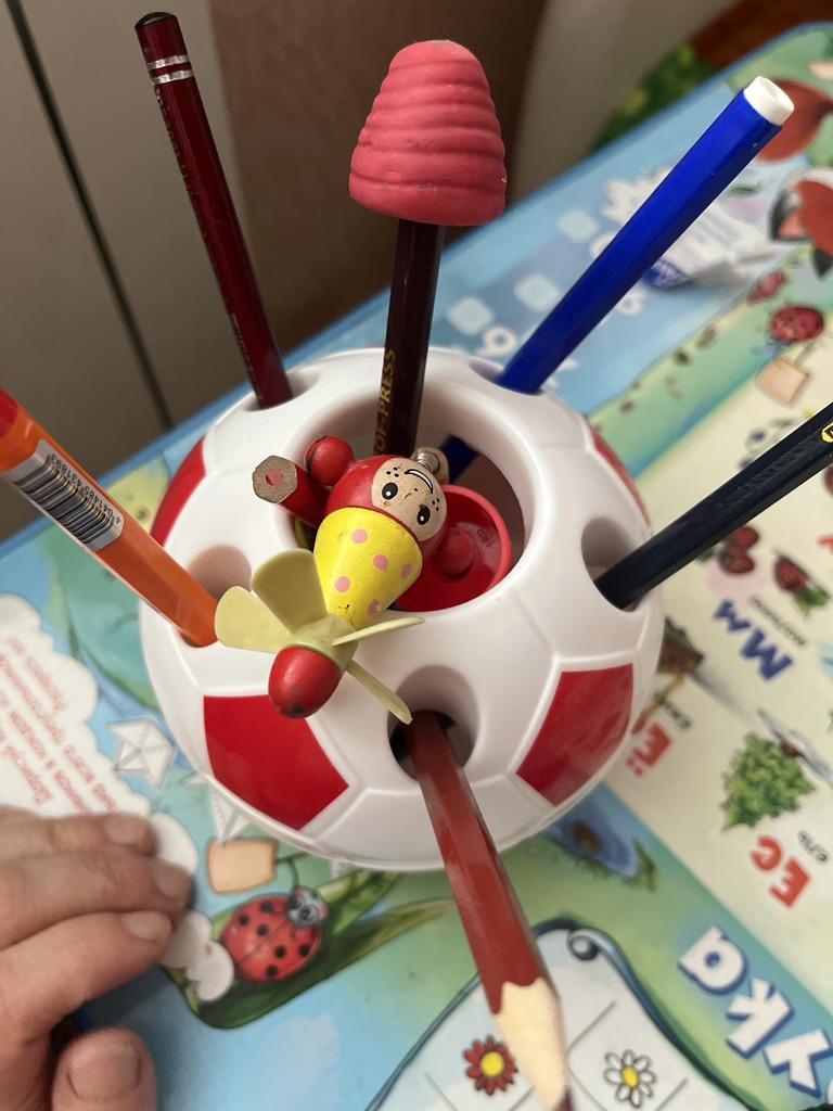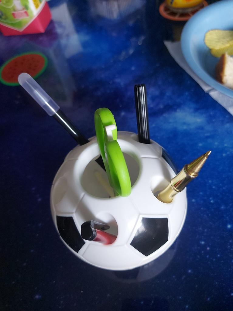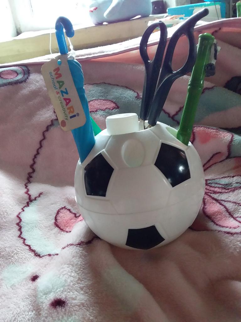 Linda "bola" para lápices y bolígrafos) le regalé a mi hijo-futuro futbolista 😜 Muy satisfecho :)