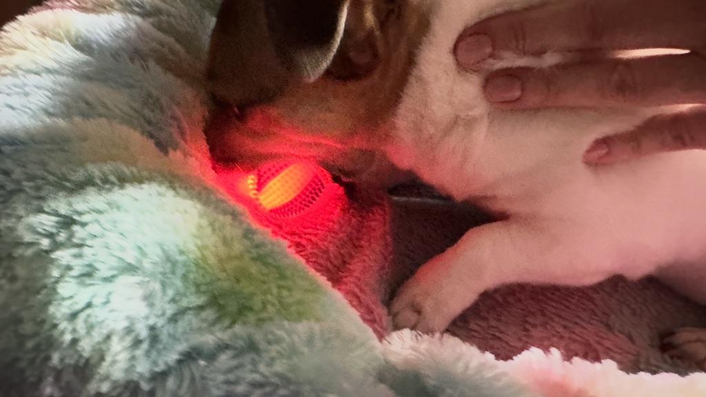 A mi Benny le encanta esta pelota, es suave y brilla maravillosamente, lo que no me gusta es que el elemento de luz está suelto en la pelota y tengo miedo de que Benny pueda abrirla con un mordisco y asfixiarse, así que solo la recibe cuando yo. Estoy ahí, por lo demás genial 🐕😊😉🐕