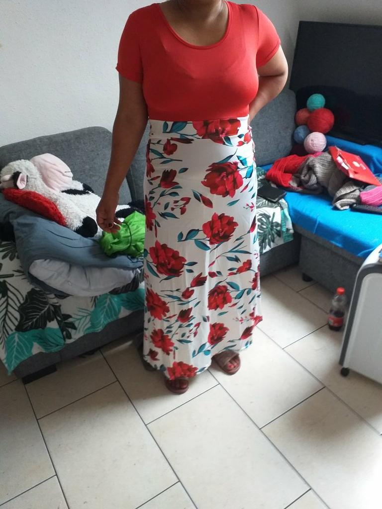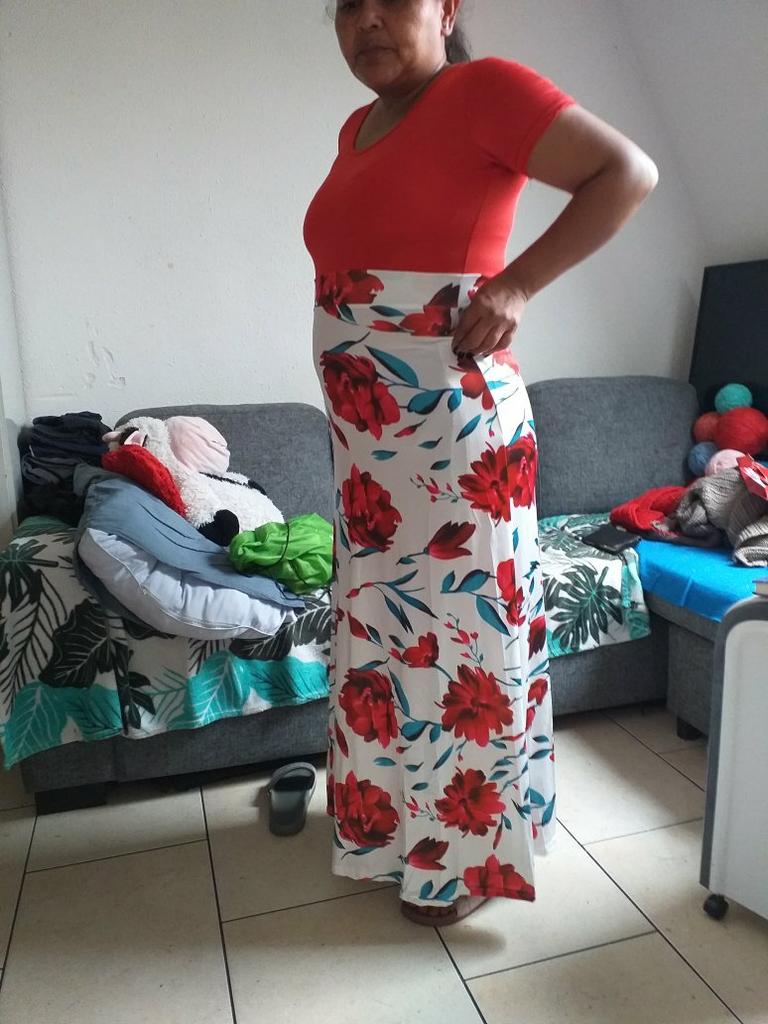 Muy bonito el color, igual que la foto. Género fino, fresquito para el verano. Gracias a los comentarios de los compradores pedí una talla más y me vino genial. La talla M no corresponde al largo que pone en el enunciado. A mi me ha ido bien , mido 1,50 y me llega al tobillo, justo como yo quería. El largo mide 1,22 cm. Y para mi perfecto. Vino bien embalado y no tardo mucho en llegar a España. Gracias Joom y al vendedor.